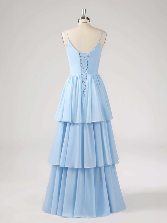 Lorelei Charming V Neck Tiered Chiffon Bridesmaid Dresses