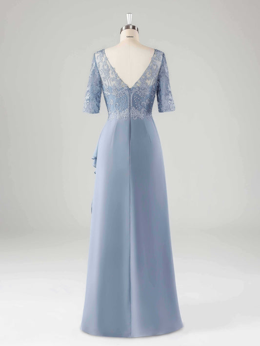 Mevia Chic Half Sleeves Tiered Long Mother of the Bride Dresses