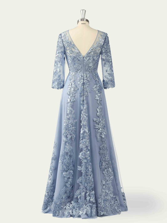 Manda Elegant V Neck Appliques Long Mother Of The Bride Dresses