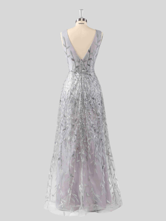 Veda Classic V-Neck A-line Formal Dresses with Sequins