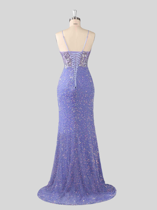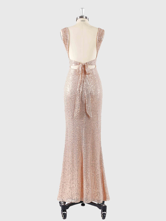 Venus Chic Square Neck Sequins Prom Dresses with Slit