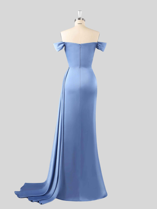 Vida Chic Off-The-Shoulder Sweep Train Satin Dresses