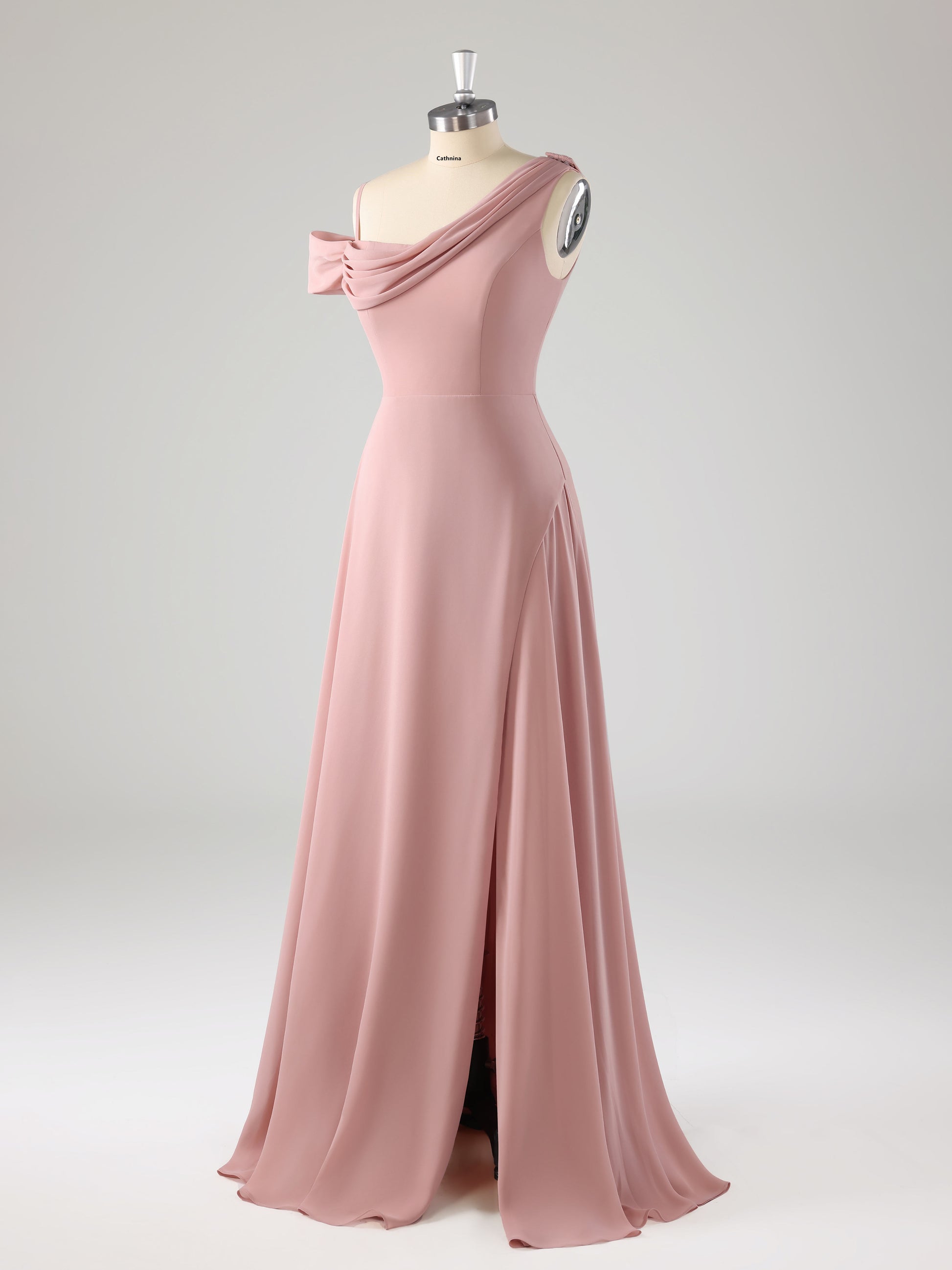 Lamey Chic One Shoulder A-line Chiffon Bridesmaid Dresses with Slit