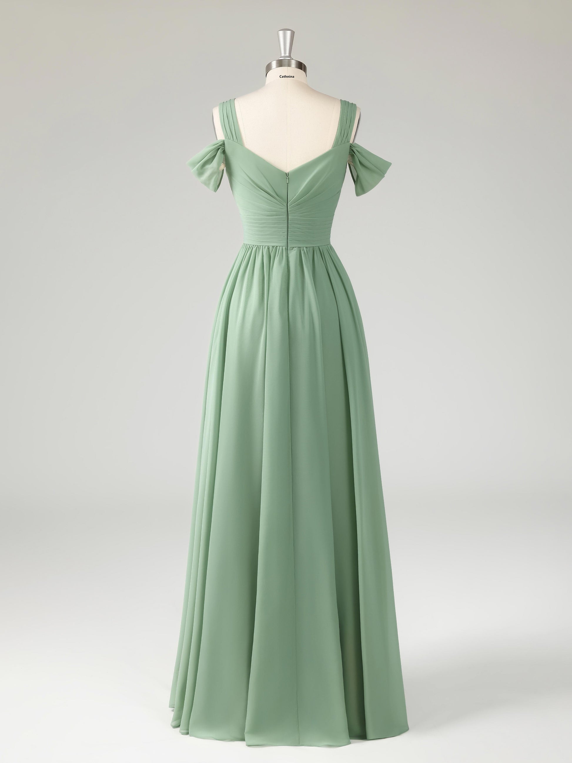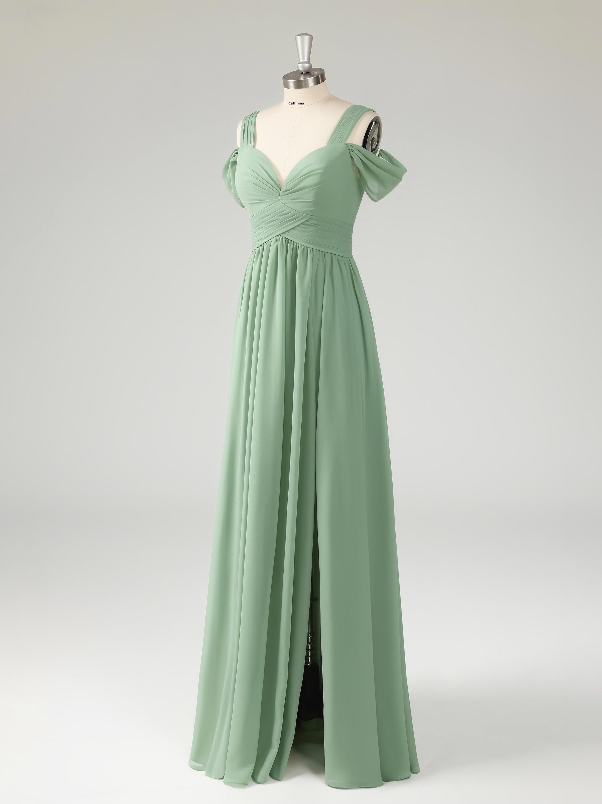 Lanie Modest Off-the-Shoulder Pleated Bridesmaid Dresses with Slit