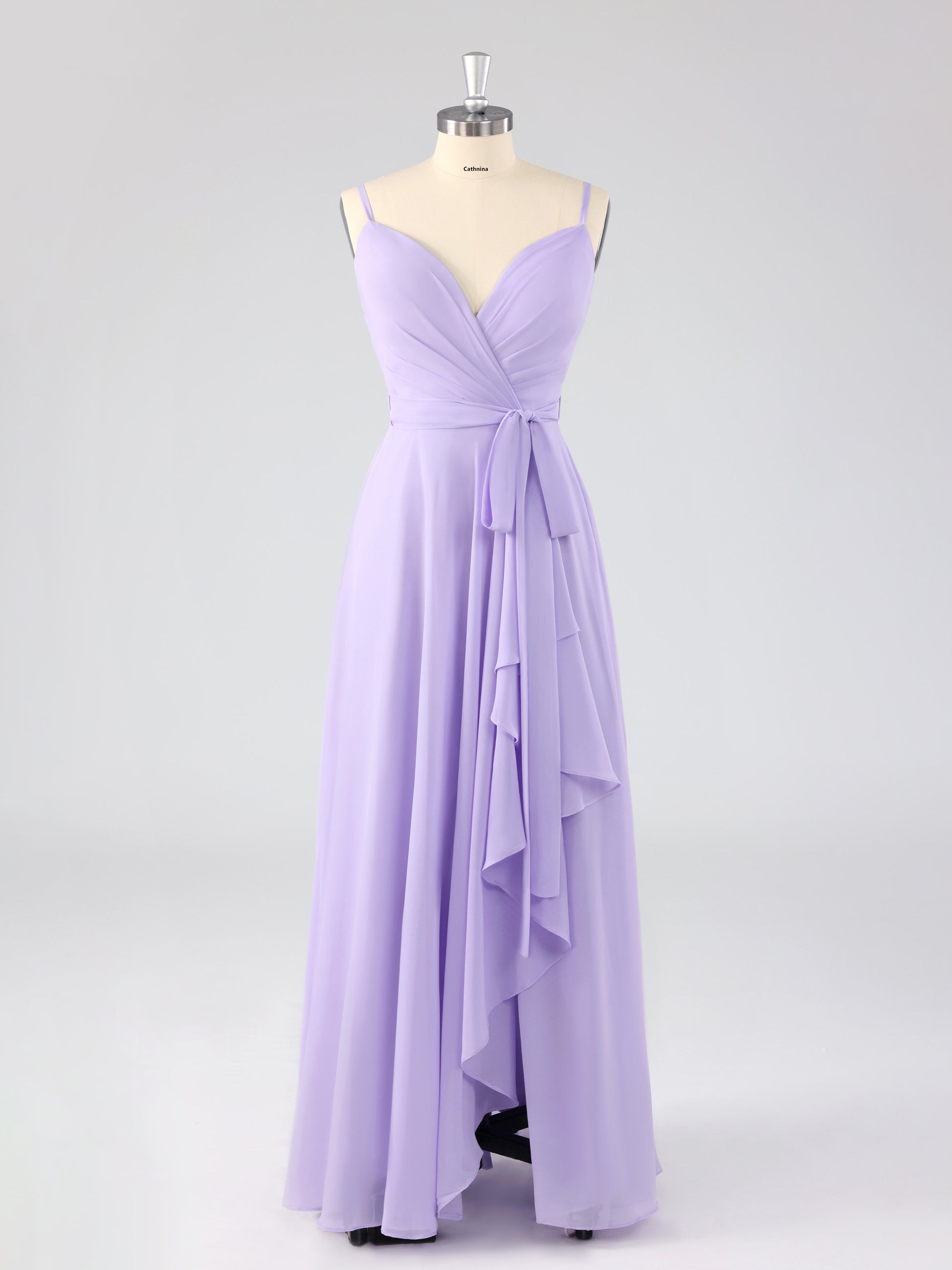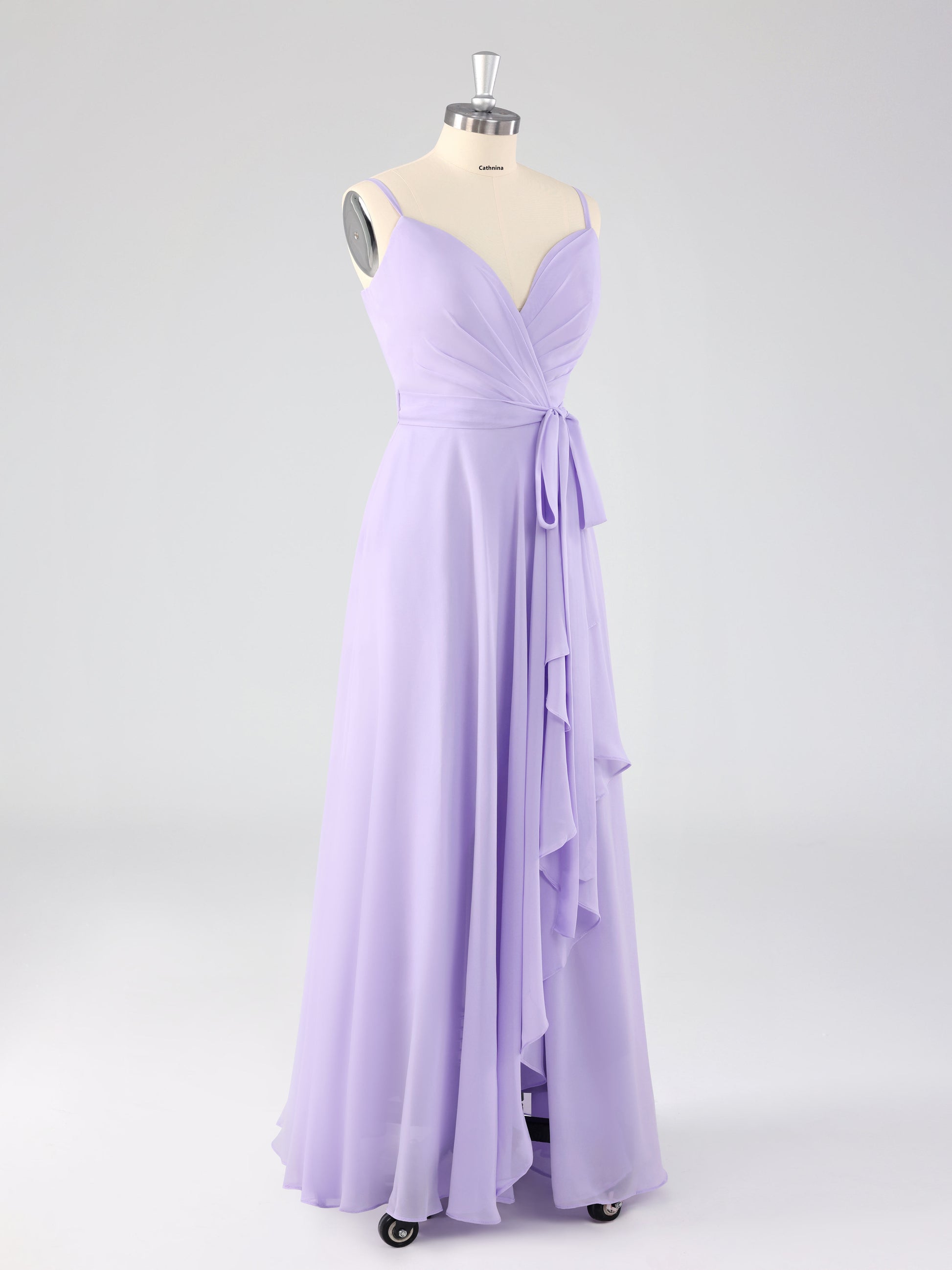 Lydel Chic V-neck Ruffles Lace Up Bridesmaid Dresses with Slit